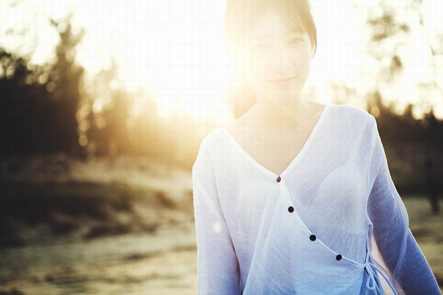 可爱美女海边